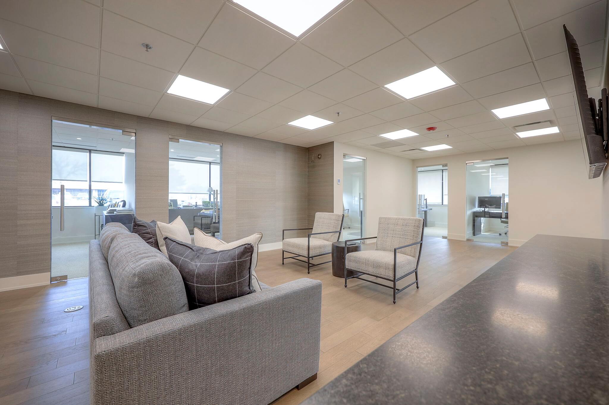 Link Property Advisors’ new Leawood office reflects the clarity, professionalism, and forward-thinking approach that defines their team. As a first-floor tenant finish, this project focused on creating a functional environment that supports both client engagement and day-to-day collaboration. From the moment you walk through the door, the space feels intentional. Clean lines, refined finishes, and warm material selections work together to create a polished yet approachable atmosphere. Glass-front offices and an open conference area maximize natural light, while thoughtfully integrated millwork and lighting details elevate the overall aesthetic. The layout was designed to balance private work areas with open collaboration zones, giving the Link team flexibility to meet with clients and connect internally. Custom touches throughout the space reinforce their brand while maintaining a timeless, professional feel. Through close coordination with the ownership and design team, we delivered a space that aligns with Link Property Advisors’ vision and supports their continued growth.